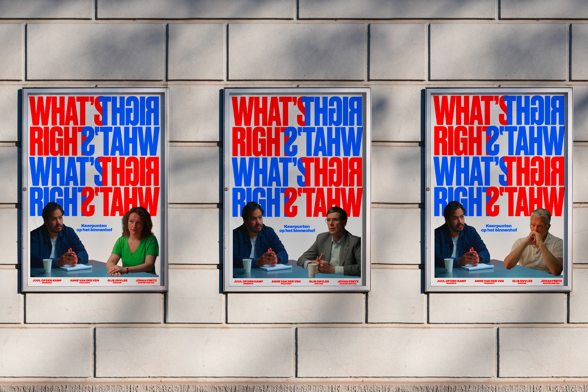 Focusing on the Netherlands’ most pressing societal challenges—housing, employment, healthcare, and migration—the series reflects on the opposing sides of today’s debates. The title design embodies this tension, in type, colour, and position, highlighting the clash of perspectives at the heart of democratic and social crises we face not only in the Netherlands, but worldwide.